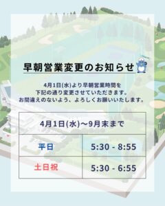4月1日より早朝営業時間を下記のとおり変更させていただきます。